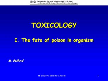 Title: TOXICOLOGY I. The fate of poison in organism