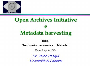 <Notice: Removed> Open Archives Initiative e Metadata harvesting PowerPoint PPT Presentation