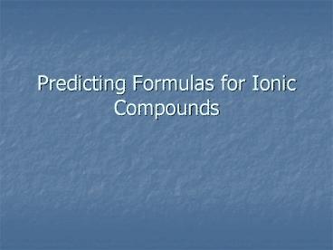 <Notice: Removed> Predicting Formulas for Ionic Compounds PowerPoint PPT Presentation