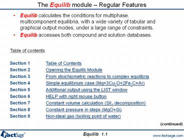1The Equilib module Regular Features