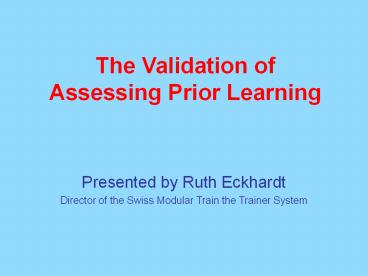 The Validation of Assessing Prior Learning PowerPoint PPT Presentation
