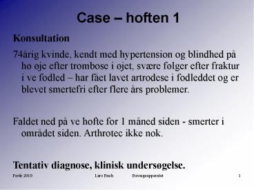 • Fortsat smerter i ve hofteregion. Pt kan ikke stå