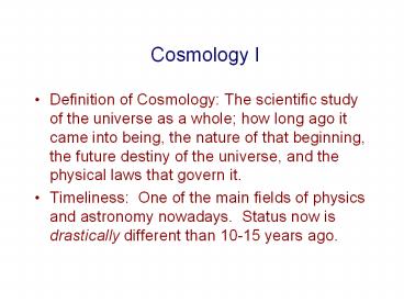 <Notice: Removed> Cosmology I PowerPoint PPT Presentation