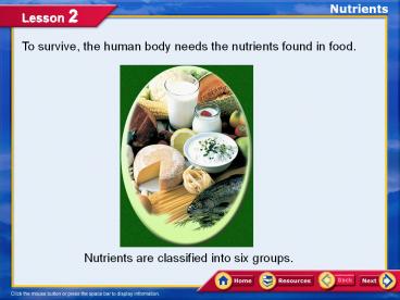 To survive, the human body needs the nutrients