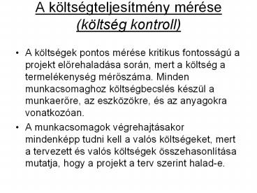 eszközökre, és az anyagokra vonatkozóan. - A munkacsomagok végrehajtásakor mindenképp tudni