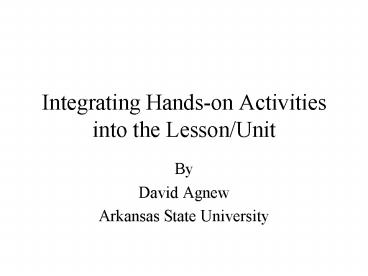 Title: Integrating Hands-on Activities into the Lesson/Unit
