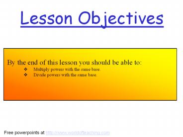 <Notice: Removed> Lesson Objectives PowerPoint PPT Presentation