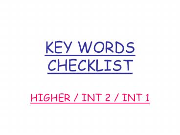 <Notice: Removed> KEY WORDS CHECKLIST PowerPoint PPT Presentation