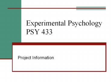 <Notice: Removed> Experimental Psychology PSY 433 PowerPoint PPT Presentation