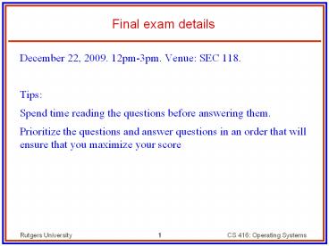 <Notice: Removed> Final exam details PowerPoint PPT Presentation