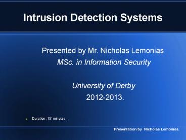 <Notice: Removed> Intrusion Detection Systems PowerPoint PPT Presentation