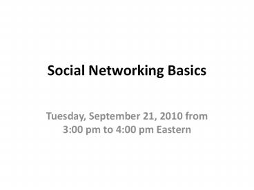 <Notice: Removed> Social Networking Basics PowerPoint PPT Presentation