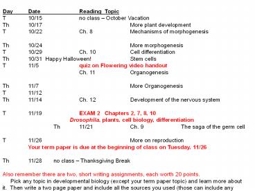 <Notice: Removed> Day DateReadingTopic PowerPoint PPT Presentation