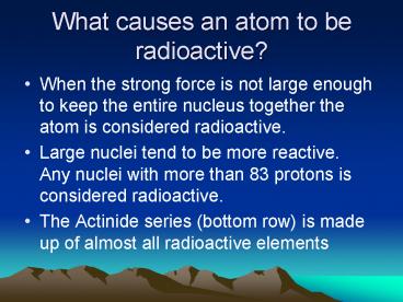 What causes an atom to be radioactive? PowerPoint PPT Presentation
