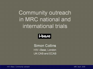 Community outreach in MRC national and international trials PowerPoint PPT Presentation