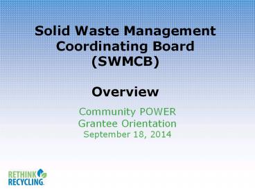 <Notice: Removed> Solid Waste Management Coordinating Board (SWMCB) Overview PowerPoint PPT Presentation