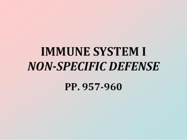 IMMUNE SYSTEM I NON-SPECIFIC DEFENSE PowerPoint PPT Presentation