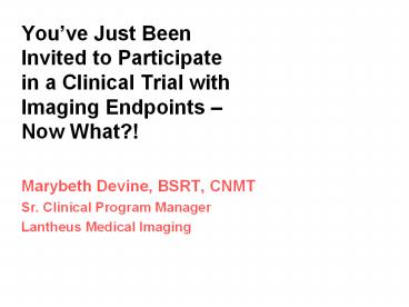 Clinical Trial with Imaging Endpoints Now What?!
