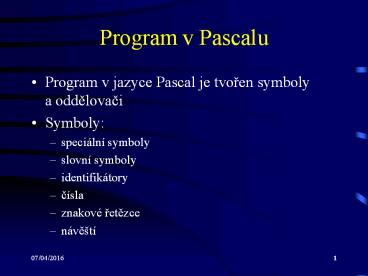<Notice: Removed> Program v Pascalu PowerPoint PPT Presentation