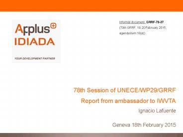 78th Session of UNECE/WP29/GRRF Report from