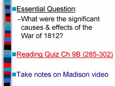 War of 1812? - Reading Quiz Ch 9B (285-302)