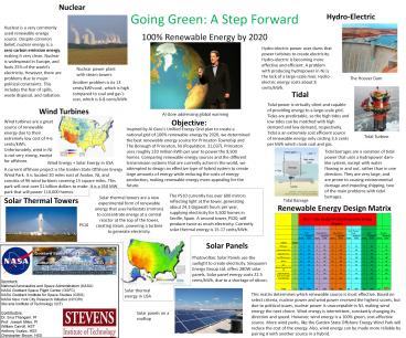 Tidal Tidal Hydro-Electric Hydro-Electric Solar Panels Solar Panels Solar Thermal Tower Solar Thermal Tower Wind Wind Nuclear Nuclear