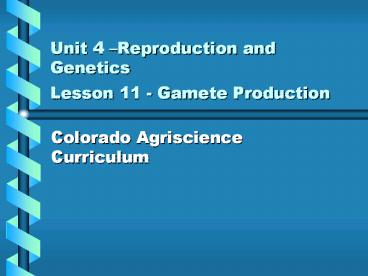 Unit 4 Reproduction and Genetics Lesson 11 -