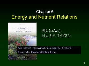 1Energy and Nutrient Relations