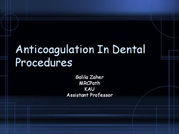 <Notice: Removed> Anticoagulation In Dental Procedures PowerPoint PPT Presentation