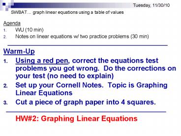 your test (no need to explain) - Set up your Cornell Notes. Topic is Graphing