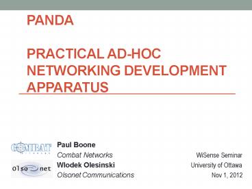 <Notice: Removed> PANDA Practical Ad-hoc Networking Development Apparatus PowerPoint PPT Presentation