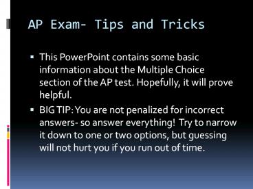 <Notice: Removed> AP Exam- Tips and Tricks PowerPoint PPT Presentation