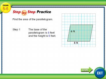 Step 1 The base of the parallelogram is 8 feet