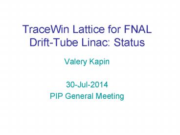 Title: TraceWin Lattice for FNAL Drift-Tube Linac: Status