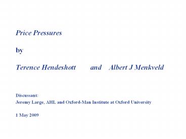 Price Pressures by Terence Hendeshott and Albert J Menkveld PowerPoint PPT Presentation