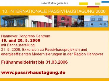 Frühanmeldefrist bis 31.03.2006 www.passivhaustag