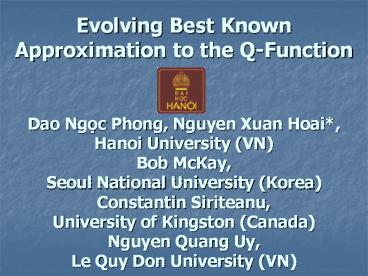 Xuan Hoai, R.I. McKay, Evolving Approximations