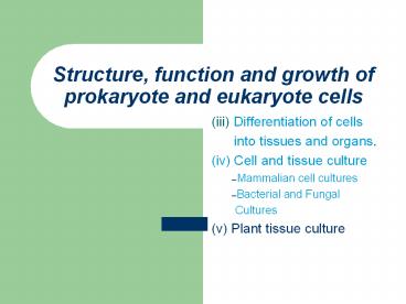 <Notice: Removed> Structure, function and growth of prokaryote and eukaryote cells PowerPoint PPT Presentation