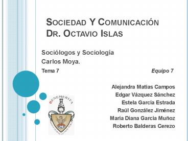 1Sociedad Y ComunicaciónDr. Octavio Islas