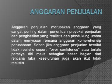 - Anggaran penjualan merupakan anggaran yang sangat