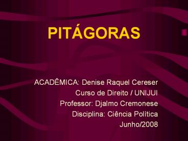 PITÁGORAS E SUAS IDÉIAS INOVADORAS