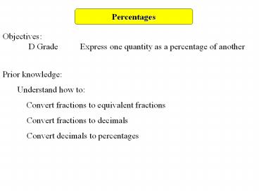 Percentages PowerPoint PPT Presentation