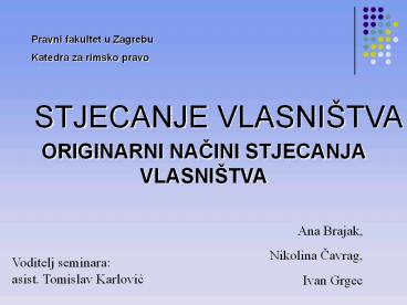 ORIGINARNI NACINI STJECANJA VLASNIŠTVA