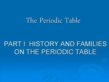 - PART I HISTORY AND FAMILIES ON THE PERIODIC TABLE