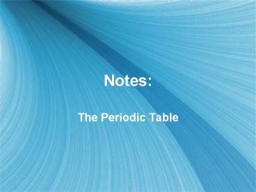 Notes The Periodic Table