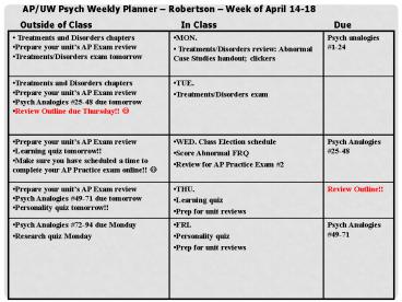 AP/UW Psych Weekly Planner Robertson