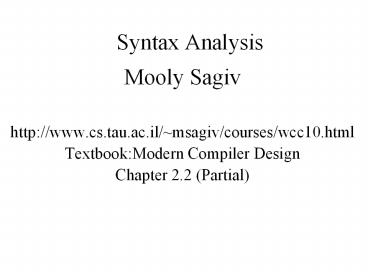 <Notice: Removed> Syntax Analysis PowerPoint PPT Presentation
