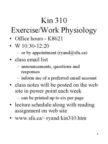 Title: Kin 310 Exercise/Work Physiology