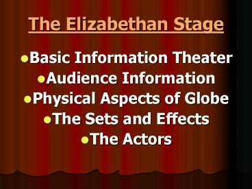 The Elizabethan Stage PowerPoint PPT Presentation