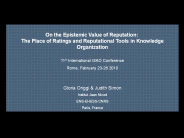 - Gloria Origgi Judith Simon